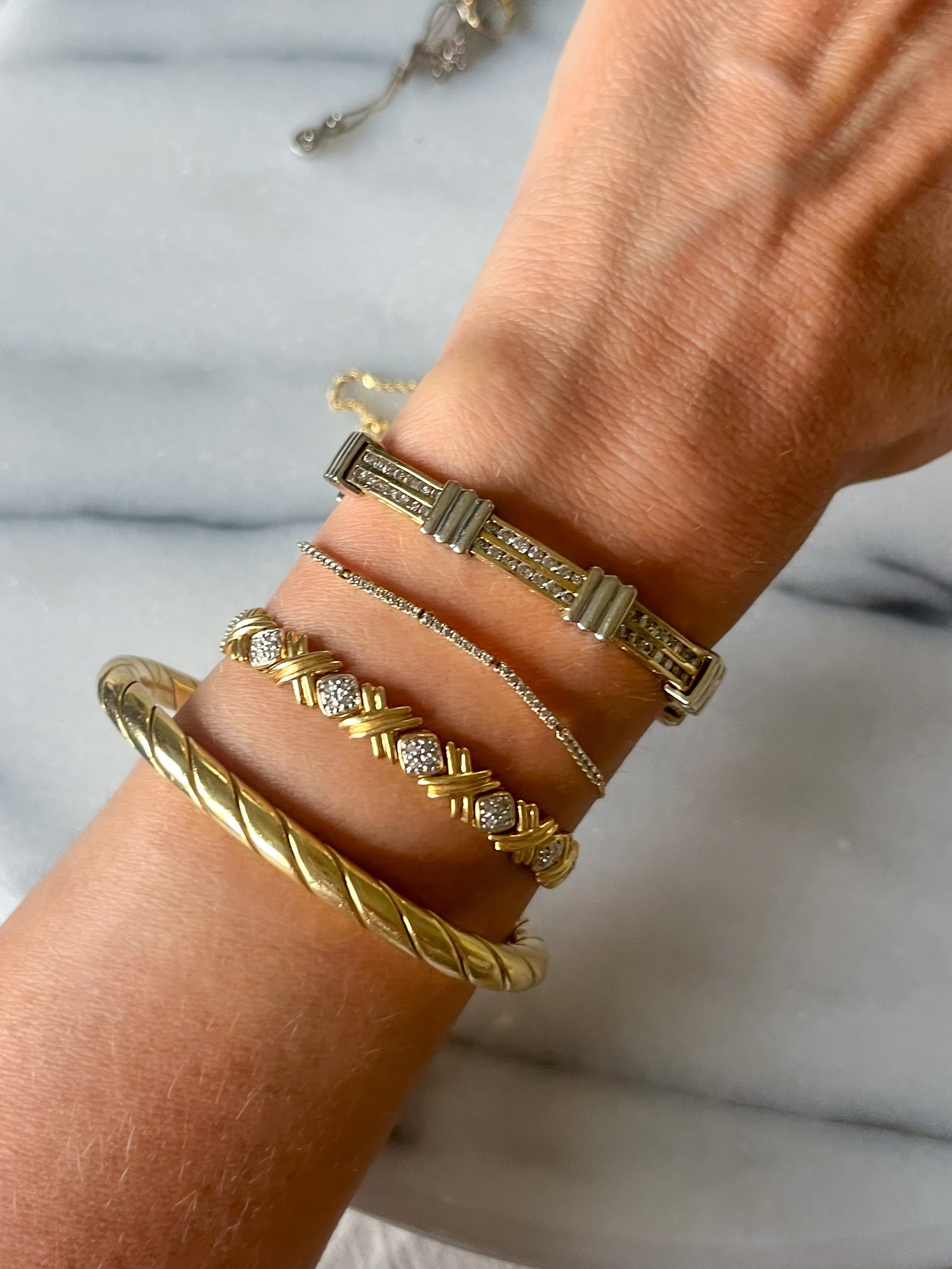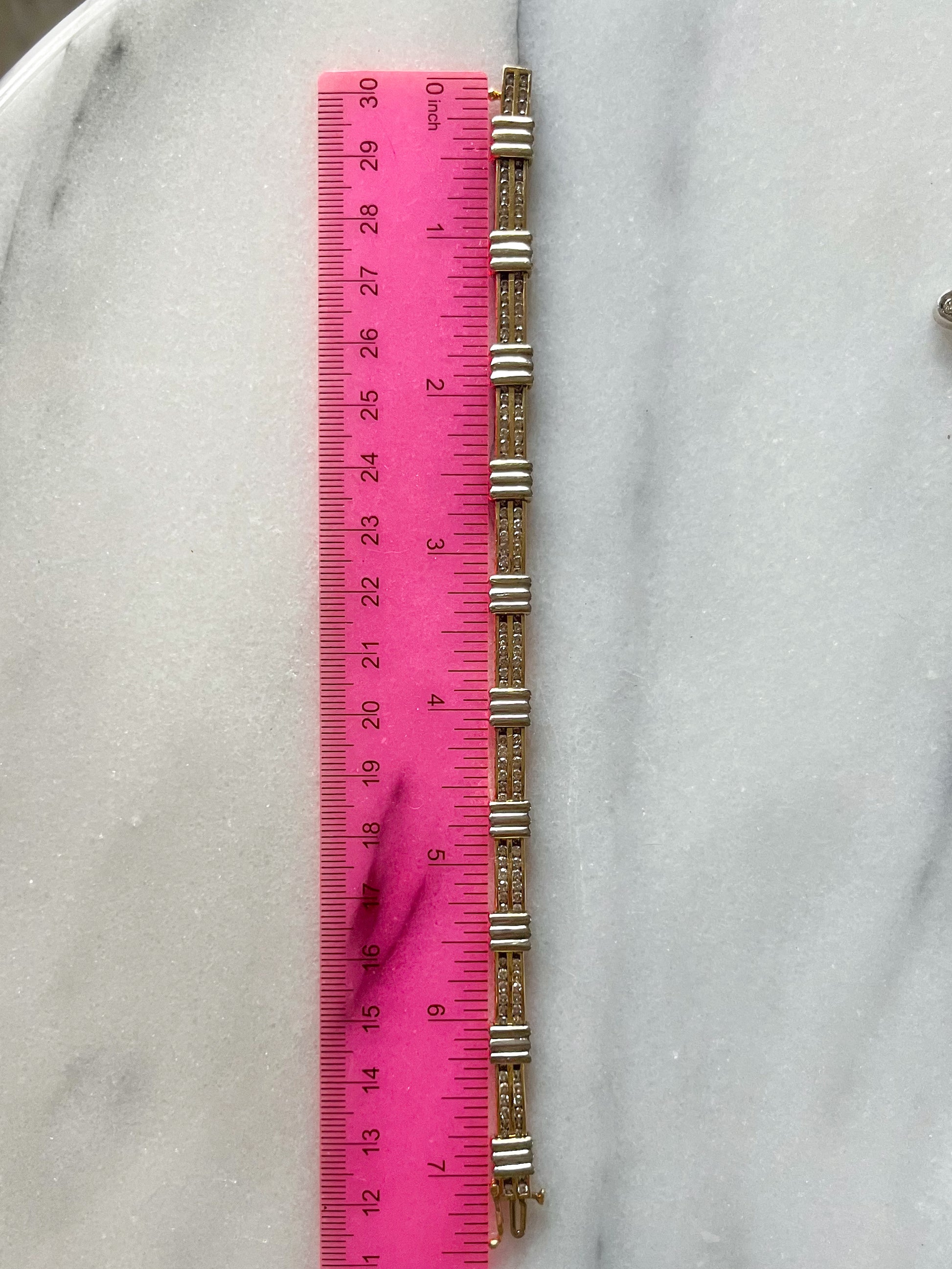 Insane, 14k yellow and white gold chunky diamond, vintage bracelet! This beauty weighs over 19 grams and is 7 inches long.