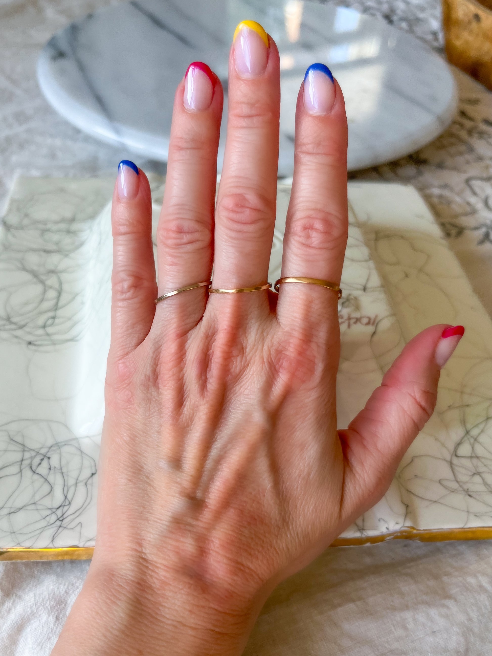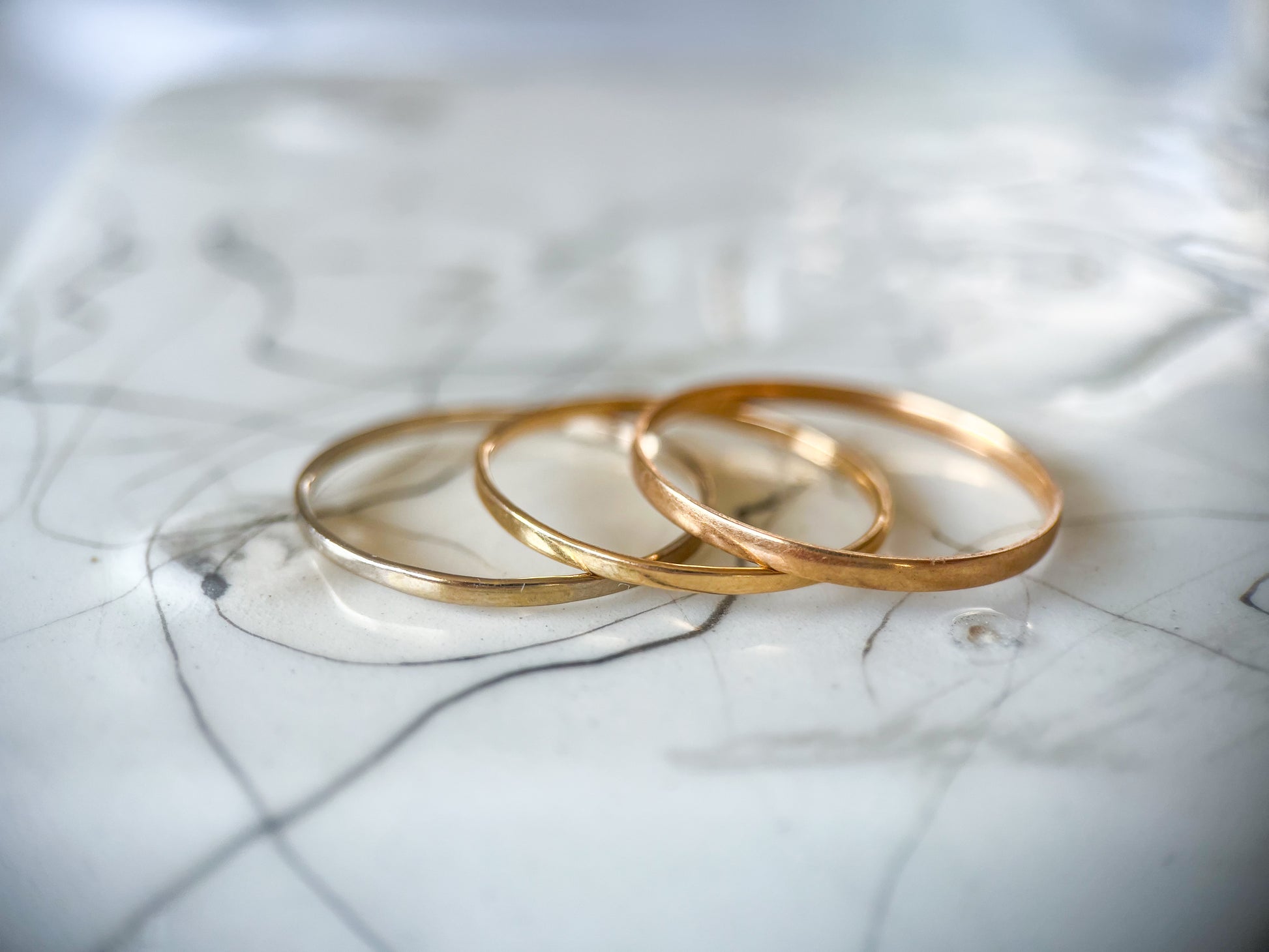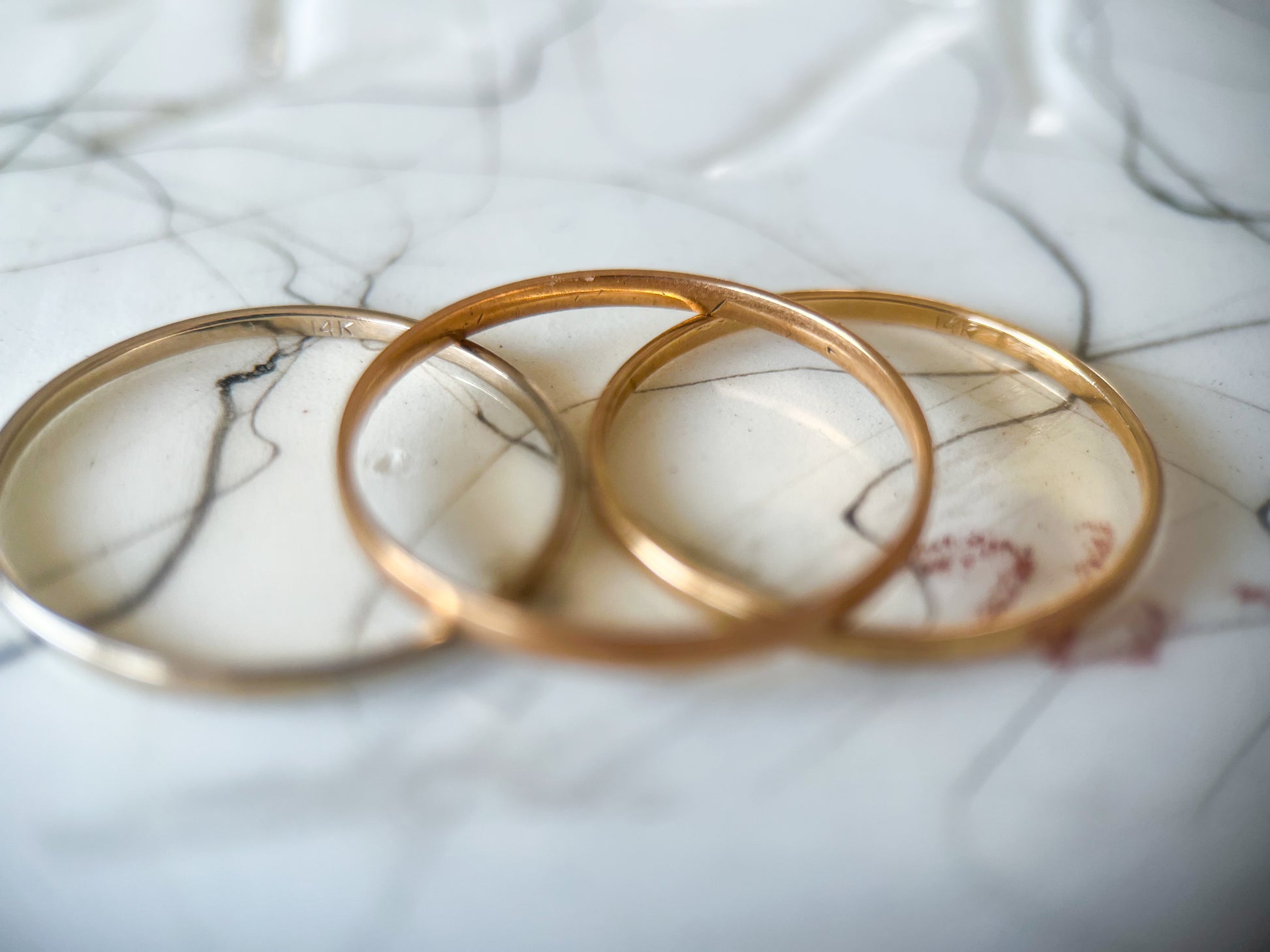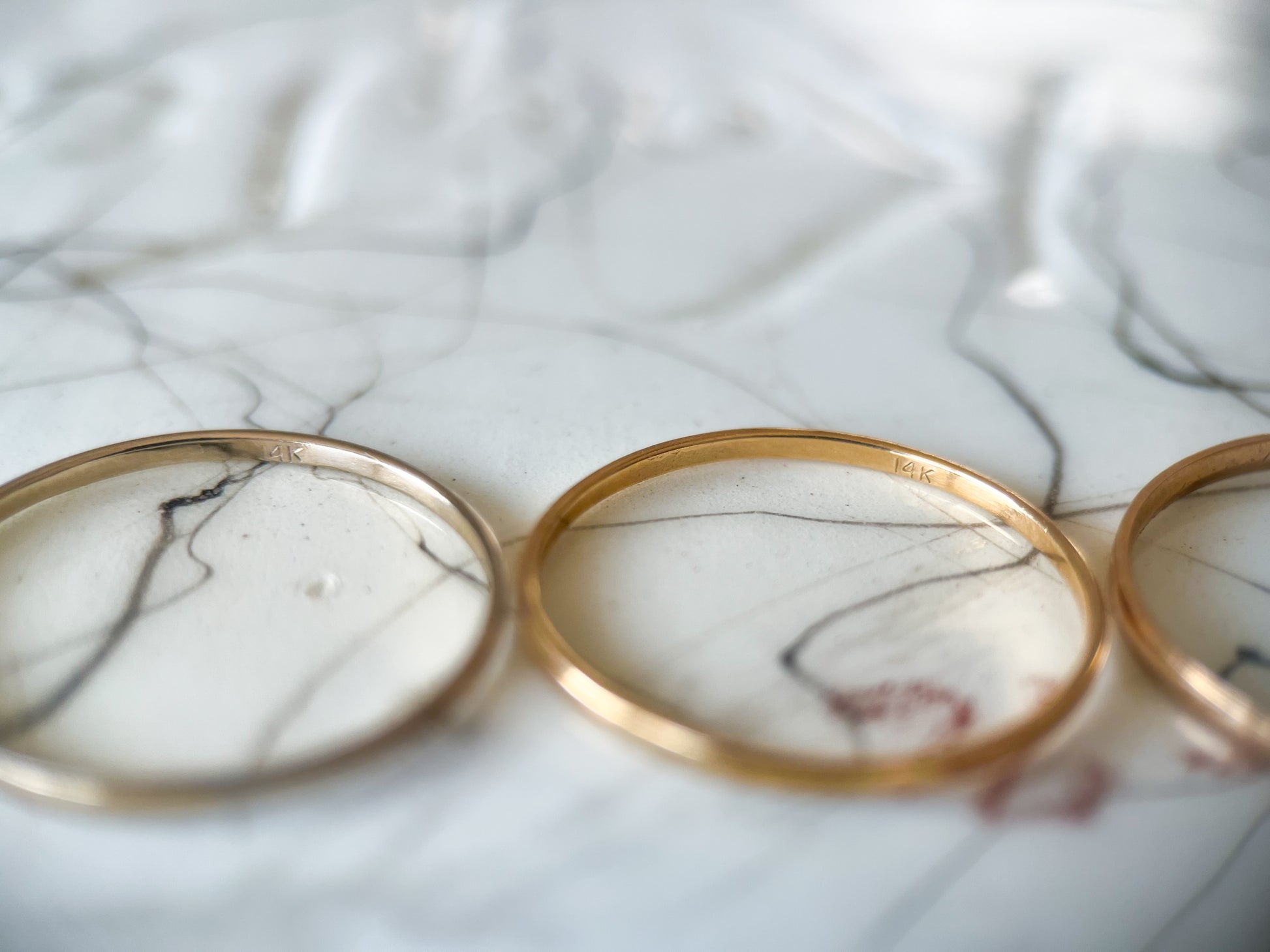 One, super thin, 14k white gold band! This ring is a size 8 and can not be resized.