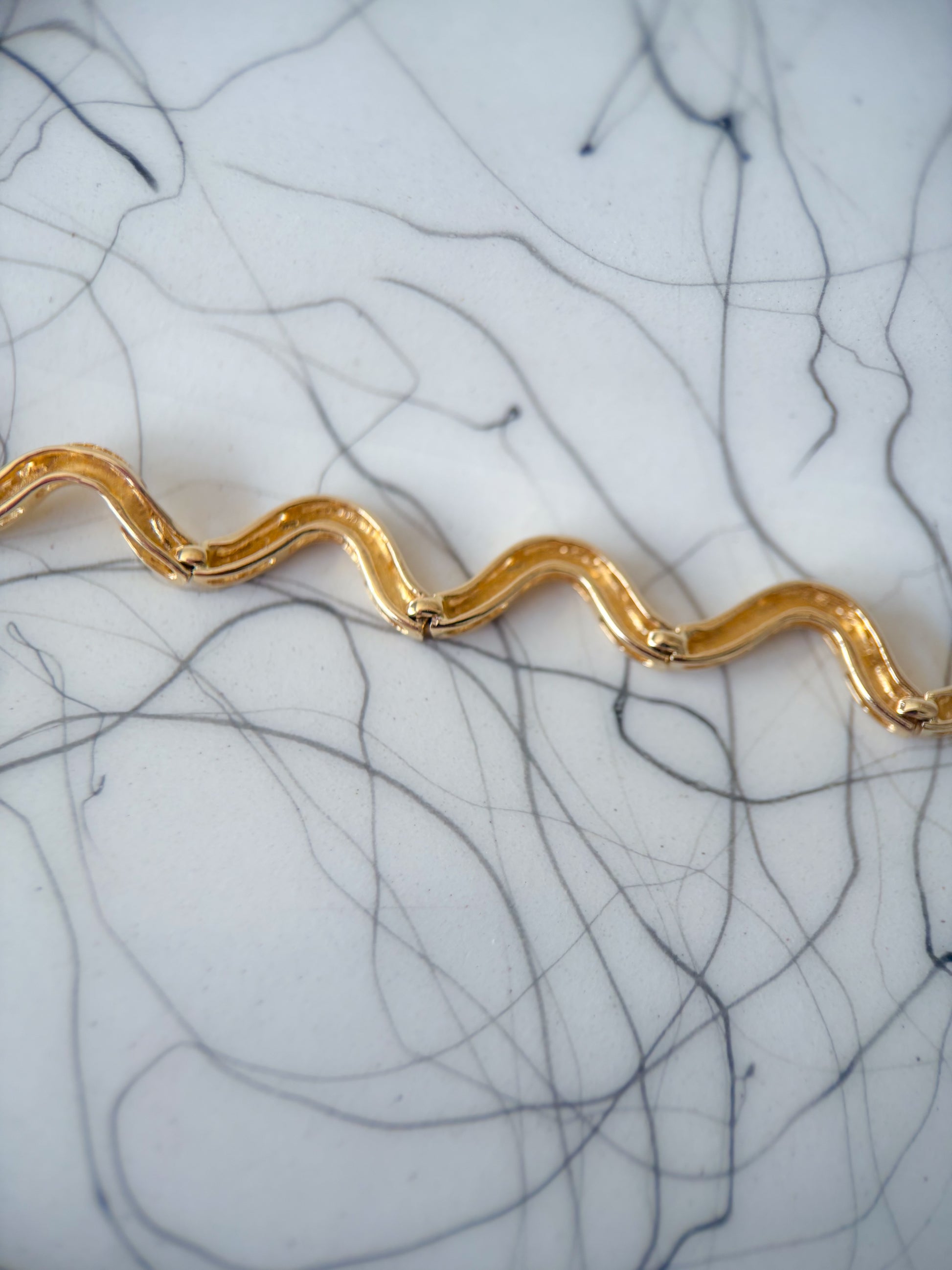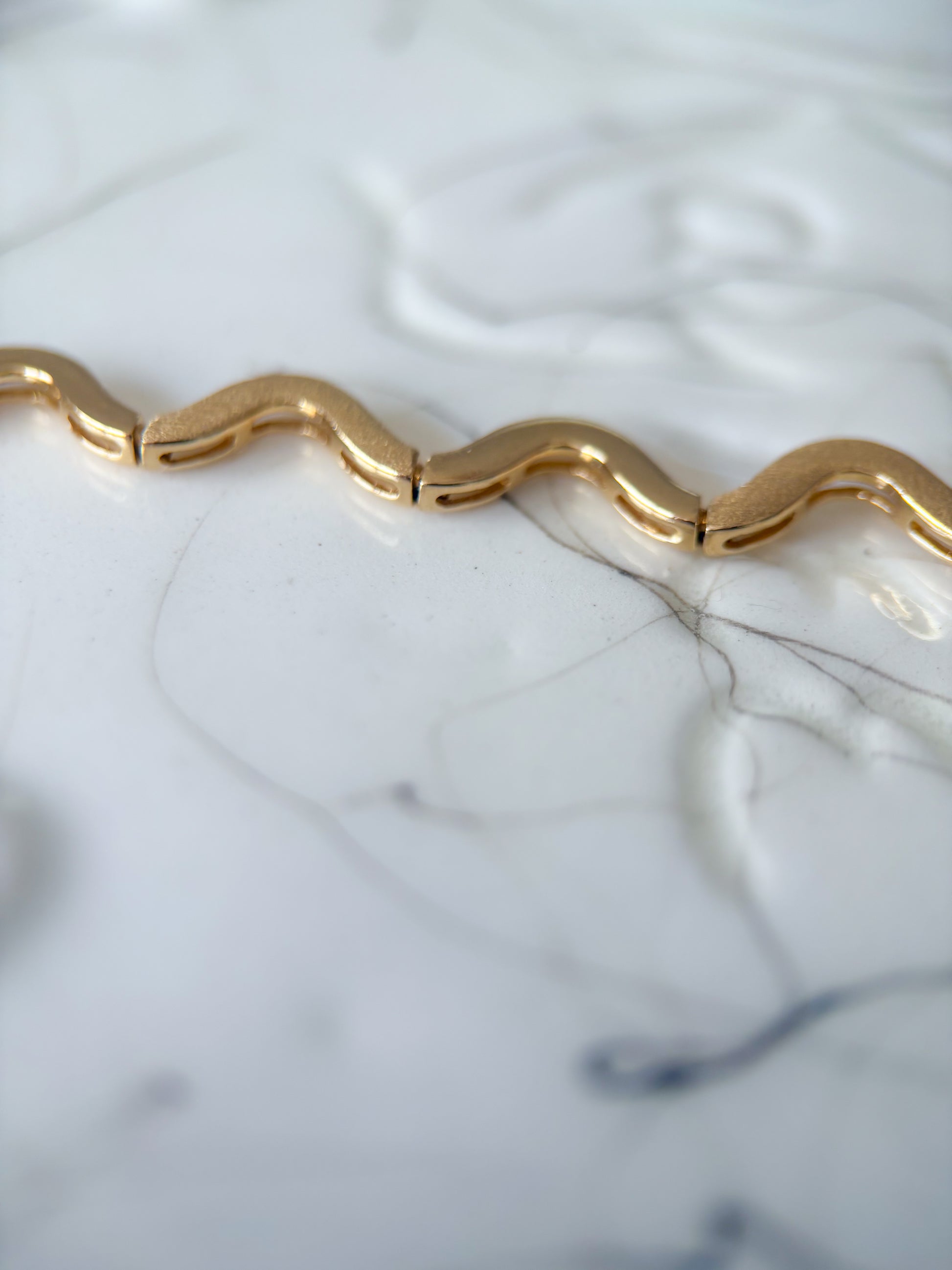 Vintage Wavy 14k Yellow Gold Shiny and Matte 7.5 Inch Bracelet