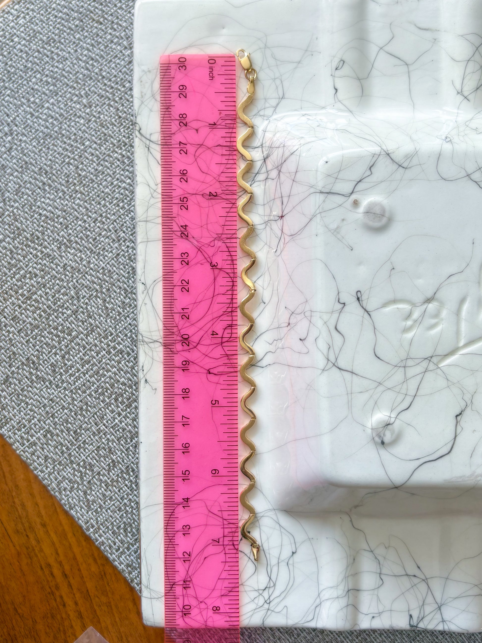 This vintage 14k yellow gold bracelet weighs over 4 and a half grams and features a wavy design with alternating shiny and matte gold! Really love this one!