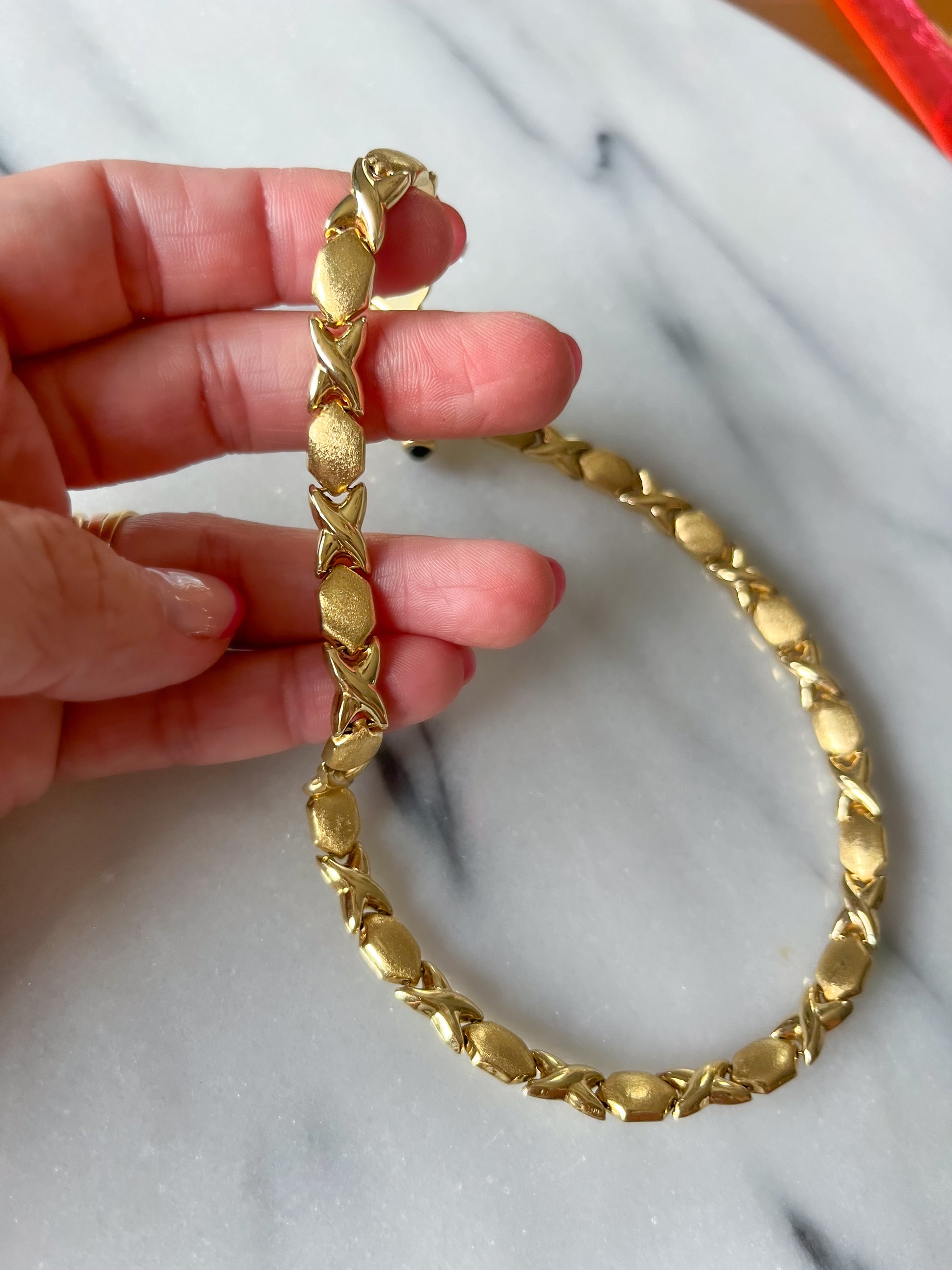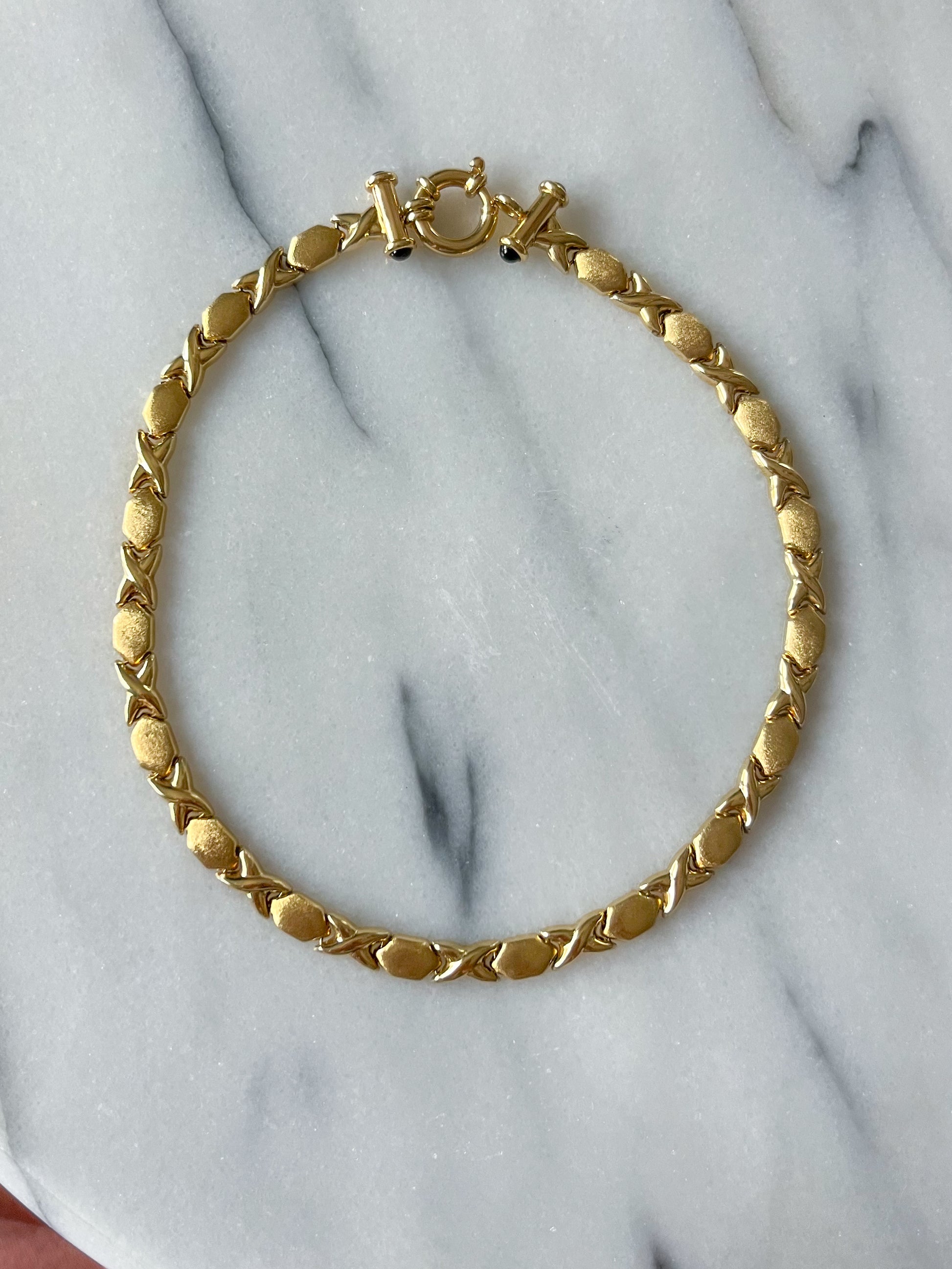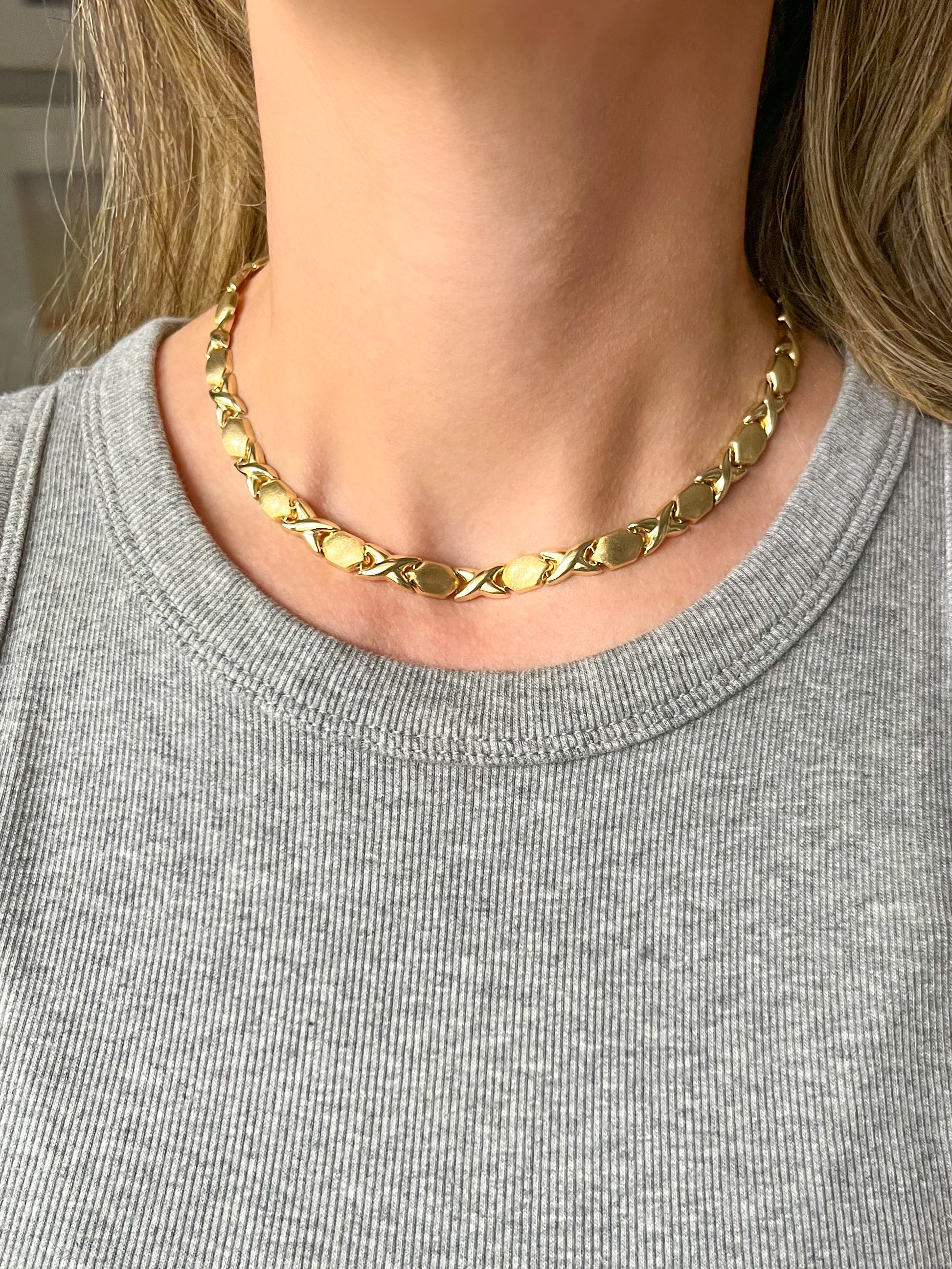 Vintage XOXO 14k Yellow Gold Flat Link 15 Inch Necklace (has matching bracelet!)