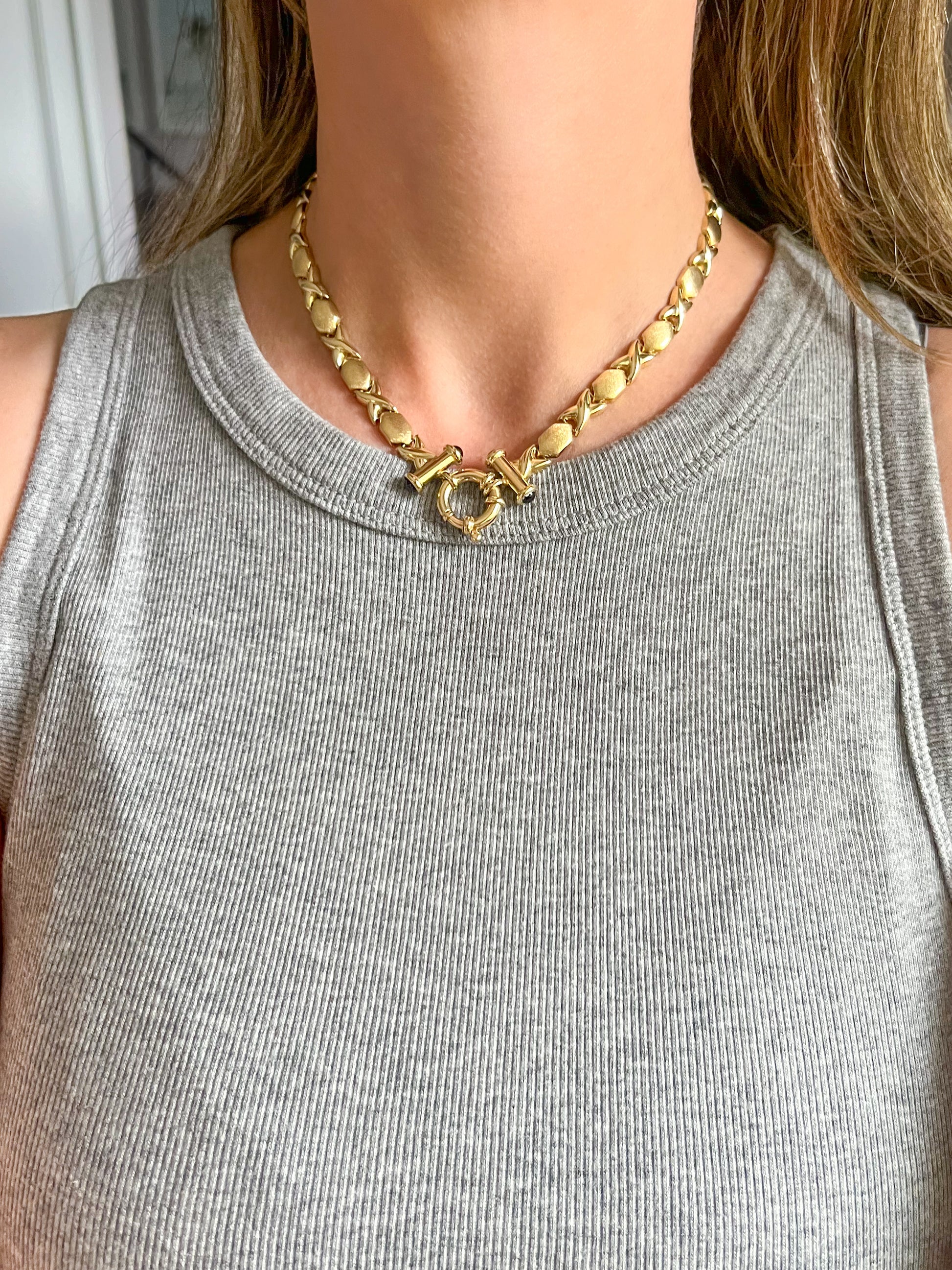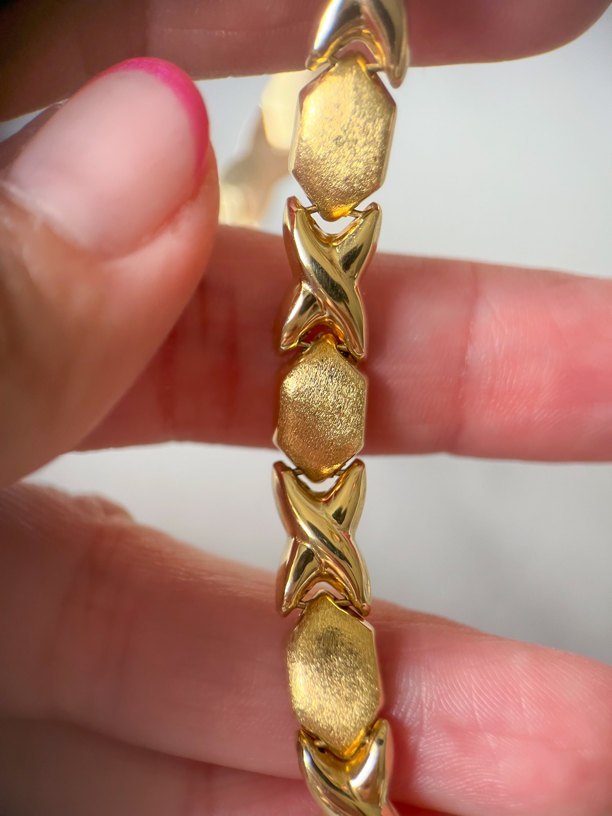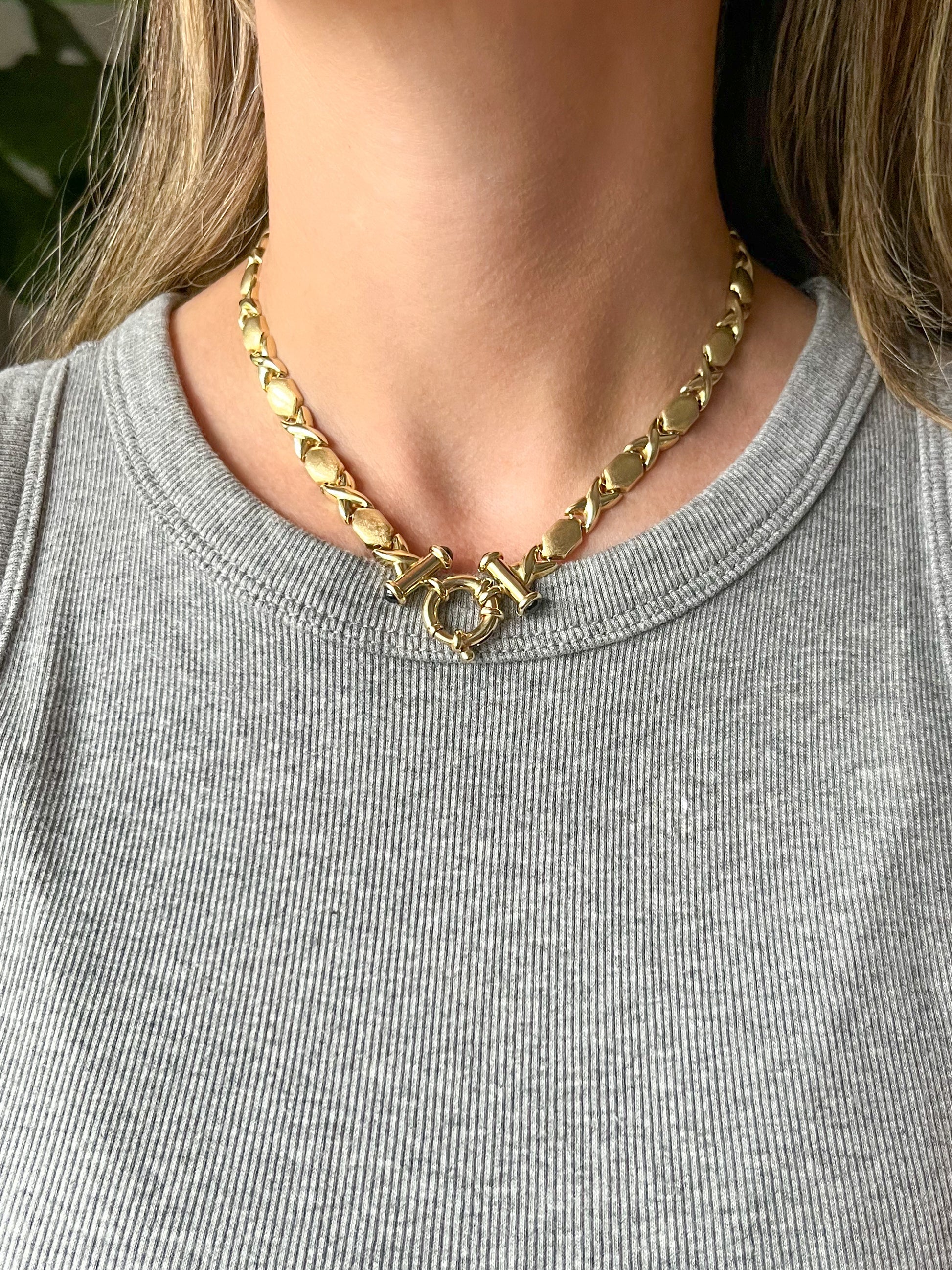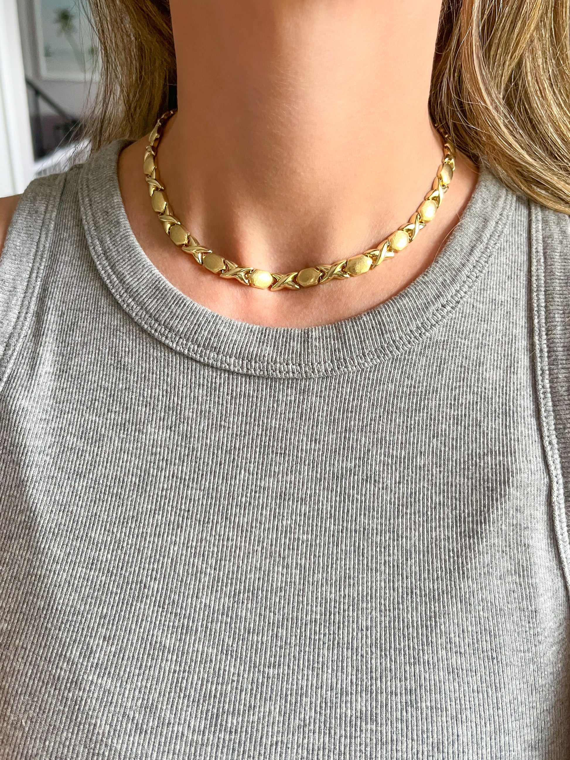 Vintage XOXO 14k Yellow Gold Flat Link 15 Inch Necklace (has matching bracelet!)